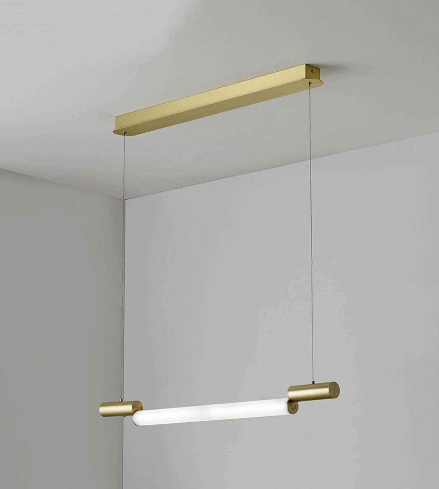 Fabriquée en laiton massif, équipée d’un diffuseur en polycarbonate blanc, la suspension Signal H970 est retenue au plafond par un double câble métallique gainé à longueur ajustable qui permet de composer son propre décor en intégrant la pendant light à l’univers environnant. Déclinée en plusieurs finitions (voir dans caractéristiques) cette lampe magnétique et poétique à l’esthétique inattendue trouvera sa place dans les projets résidentiels comme professionnels (restauration, hôtellerie, etc.), réveillant les intérieurs par sa signature graphique et son ambition architecturale. Luminaire LED grand format aux allures de néon, cette lampe tubulaire met en avant la beauté du laiton, sa noblesse et sa chaleur, tout en offrant un éclairage confortable et efficace. Fabriquée en France comme l’ensemble du catalogue CVL, cette suspension signée Pauline Deltour possède l’élégance minimaliste des créations intemporelles, des pièces que l’on se transmet de générations en générations qui portent en elles l’excellence de son créateur et l’extraordinaire savoir-faire des artisans qu’ils l’ont façonnée. Essentielle, pure et graphique, la suspension Signal H970 CVL parvient en quelques traits décalés à réinventer le luminaire domestique.