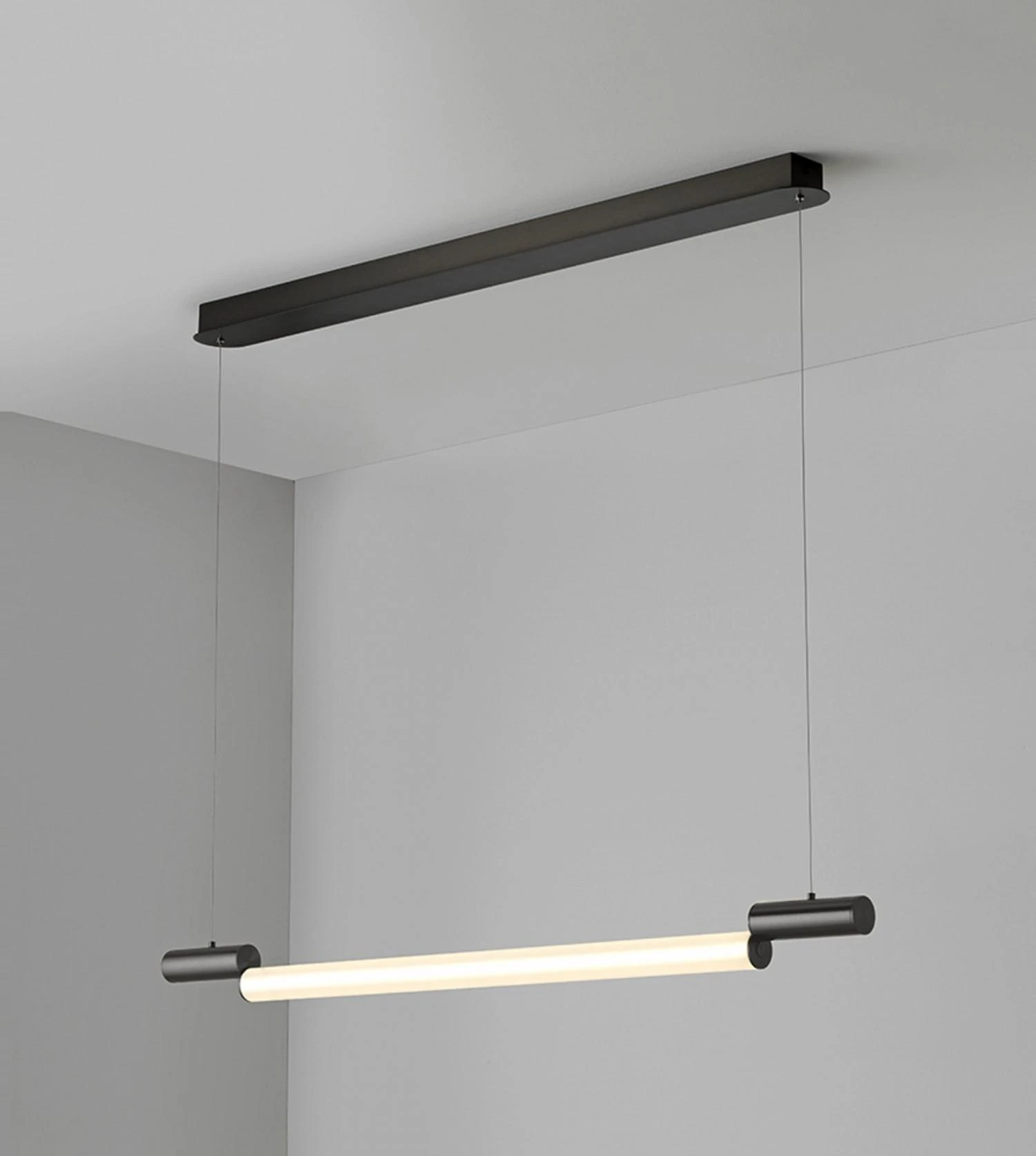 Hommage lumineux aux néons d’autrefois, la suspension Signal H970 éditée par la maison française CVL brille par son élégance et son ton décalé. Imaginée par la designer Pauline Deltour, cette pendant light horizontale de 97 cm de long affiche une silhouette minimaliste, un style épuré chic et graphique qui séduira les amateurs de décoration intérieure à la recherche d’une solution d’éclairage à la fois belle, fonctionnelle et intemporelle. Lampe d’ambiance destinée à éclairer des espaces aux dimensions généreuses (salons, salles à manger, chambres à coucher ou bureaux), la Signal H970 pendant light CVL exprime son potentiel sur l’axe horizontal permettant de créer un large espace lumineux, parfait au-dessus d’une table à manger familiale ou d’un grand canapé. En choisissant de désaxer son luminaire, Pauline Deltour a réussi à casser une linéarité un peu trop sage et réinventer une lampe classique qui devient un objet lumineux design iconique.